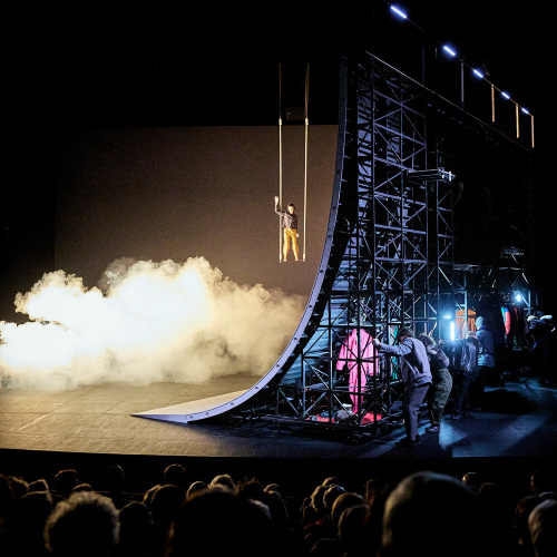 Mathurin Bolze crée des spectacles où la prouesse acrobatique dialogue avec la poésie, les corps en apesanteur avec la littérature et la philosophie. Avec Immaqaa, il nous emmène en expédition dans le Grand Nord, dans un voyage en suspension. Après une immersion au Groenland, une terre instable, aux avant-postes des bouleversements du globe, Mathurin Bolze et ses interprètes ont collecté des sons, des sensations et des images. A partir de ces matériaux, ils interrogent la puissance symbolique de la banquise à l’ère du dérèglement climatique. Immaqaa, qui signifie « peut-être » en langue inuit, se fait l’écho de notre époque instable, entre risque de disparition et possible réinvention de notre condition humaine. Sur le plateau, une forme immense comme une vague, et blanche comme la glace, décompose et recompose sans cesse l’espace. Entre suspensions, portés et voltiges, huit circassiens se lancent dans cette géographie poétique pour évoquer les explorateurs des siècles passés, l’attraction des lieux inhabités et le caractère périlleux de cet ailleurs que l’on sait en danger.