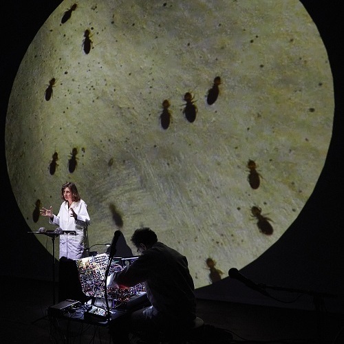 Quelles relations entretenons-nous avec les animaux sauvages peuplant nos villes ? comment les termites se reproduisent-ils ? Y a t-il une régulation des populations de rats et si oui comment est-elle organisée ? Pourquoi y a-t-il des chiens errants et comment se forment des meutes ? L’auteure Olivia Rosenthal et le compositeur et vidéaste Eryck Abecassis explorent les sensations que produisent ce partage de territoire. Véritable appel à l’imagination, le spectacle prend la forme d’une conférence-concert. Par le texte, la musique live et improvisée, les sons subaquatiques produits sur scène et la vidéo, Macadam Animal fait surgir ces bêtes quasi invisibles qui accompagnent nos existences urbaines. Une invitation à réenvisager les relations violentes ou tendres, imperceptibles, ténues mais permanentes, que nous, citadins, avons avec les animaux.