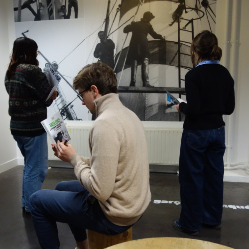Les participant.e.s de l'atelier d'écriture Anita Conti : l'ultime visite guidée vous invitent à traverser avec eux l'exposition Anita Conti, l'ivresse du risque à l'occasion de son finissage. Ils et elles vous présenteront leurs textes devant les photos qui les ont inspirés, retraçant l'histoire de certaines images, détaillant les gestes qui y sont capturés, recréant le paysage sonore de l'instant, imaginant la scène qui l'a précédé ou suivi, révélant enfin l'expressivité d'une posture de marin ou d'un profil de poisson... Leurs textes viennent rendre compte de la manière dont le travail et les images d'Anita Conti nous concernent encore aujourd'hui.